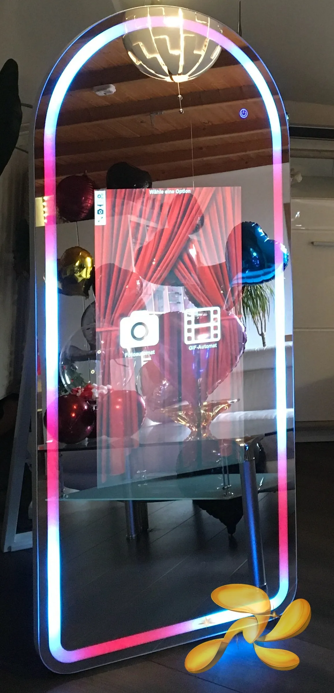Ob Schuleinführung, Hochzeit, Firmenevent oder Jugendweihe: Der Magic Mirror lässt sich komplett individualisieren. Wählen Sie als Hintergrund zum Beispiel ein persönliches Foto des Ehrengasts, ihr Firmenlogo oder ein thematisch passendes Motiv. Auch die Fotos selbst können individuell gestaltet werden – etwa mit einer charmanten Unterschrift wie „Ein Tag voller Magie – für immer festgehalten“ oder „Gemeinsam gelacht, gemeinsam erinnert“ oder einfach nur ihr Firmenlogo.